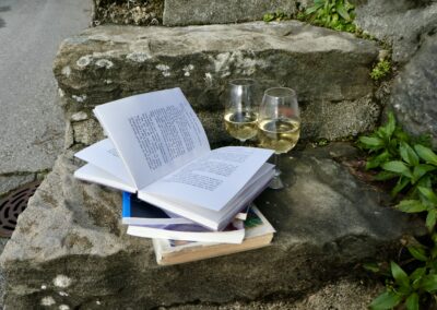 Balade dans les vignes ou animation dans un caveau, agrémentée de courtes lectures à savourer, un verre à la main. Un florilège de textes autour de Lavaux.